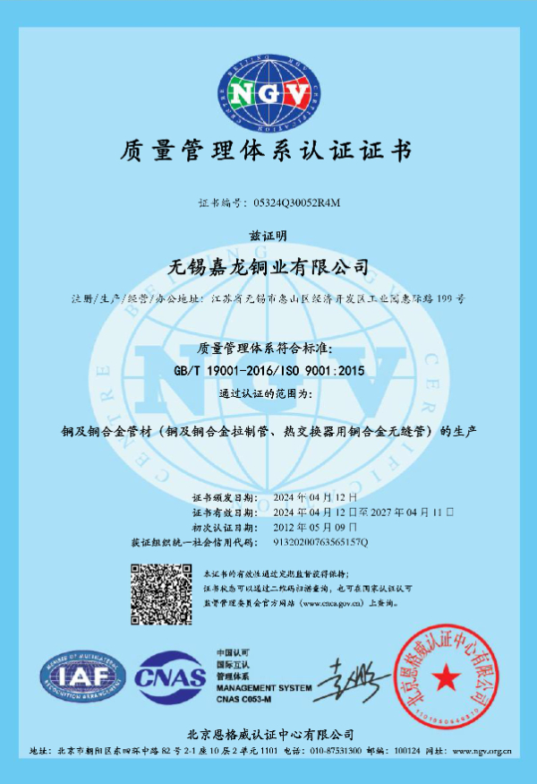 首页 产品中心 铜管应用 关于嘉龙 生产流程 资质荣誉 联系我们