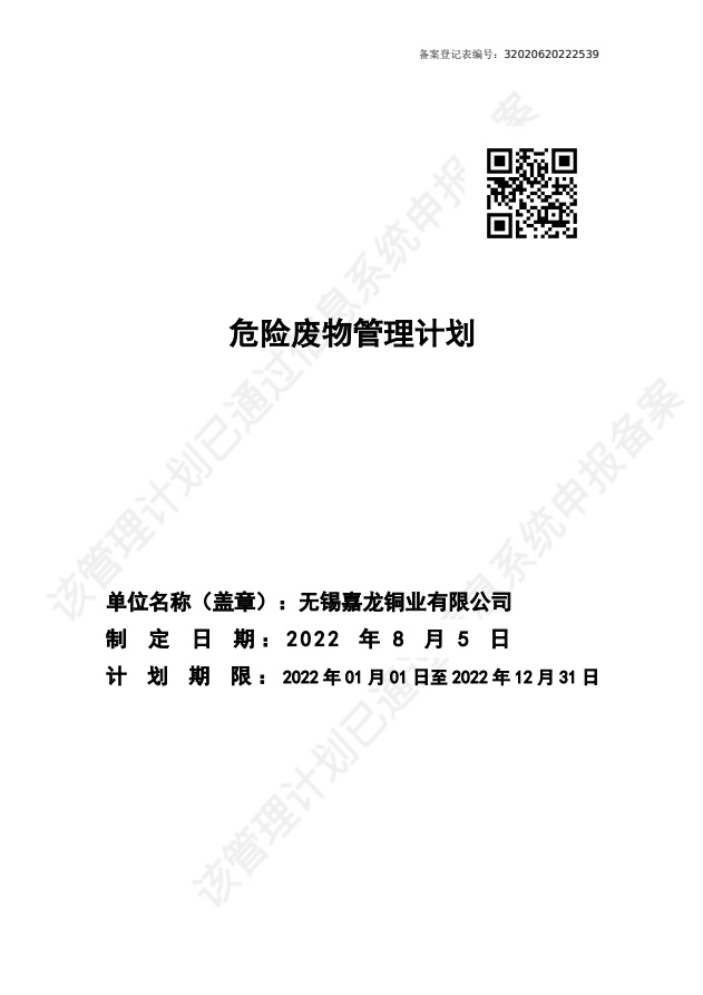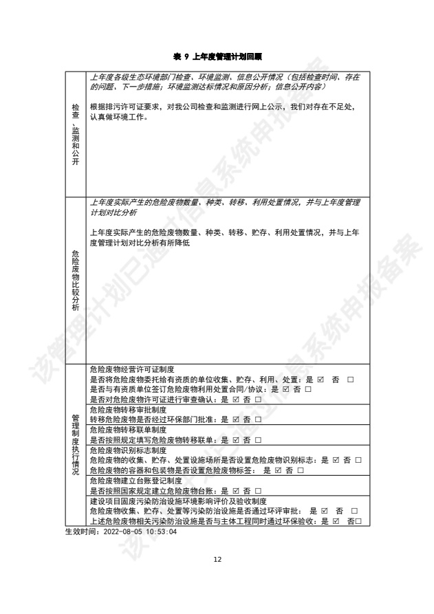 | 危险废物管理计划 |
